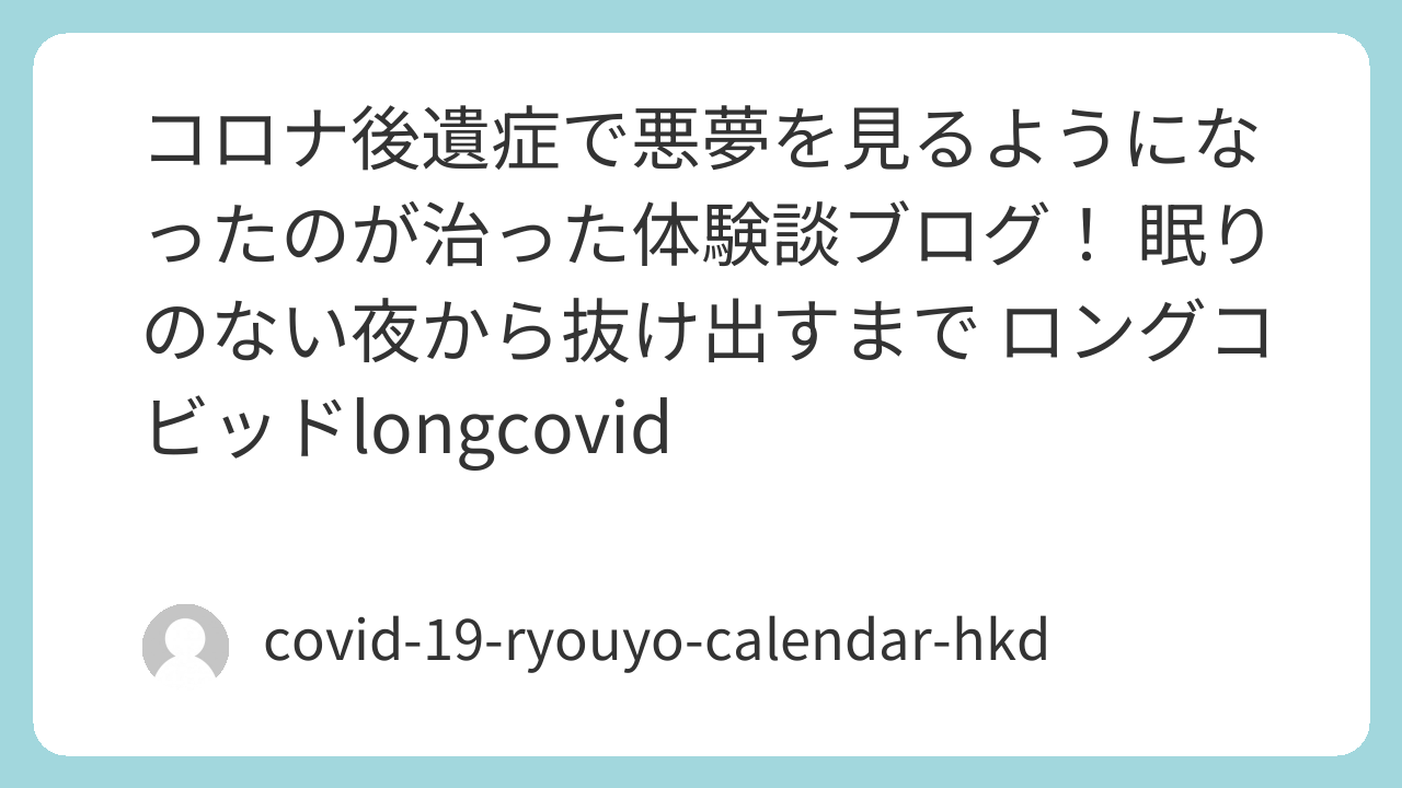 この記事では コロナ後遺症で悪夢に悩まされながらも 医療機関の治療とセルフケアで改善していった体験談と 主な治療法 成分 サプリメントの考え方をまとめます。