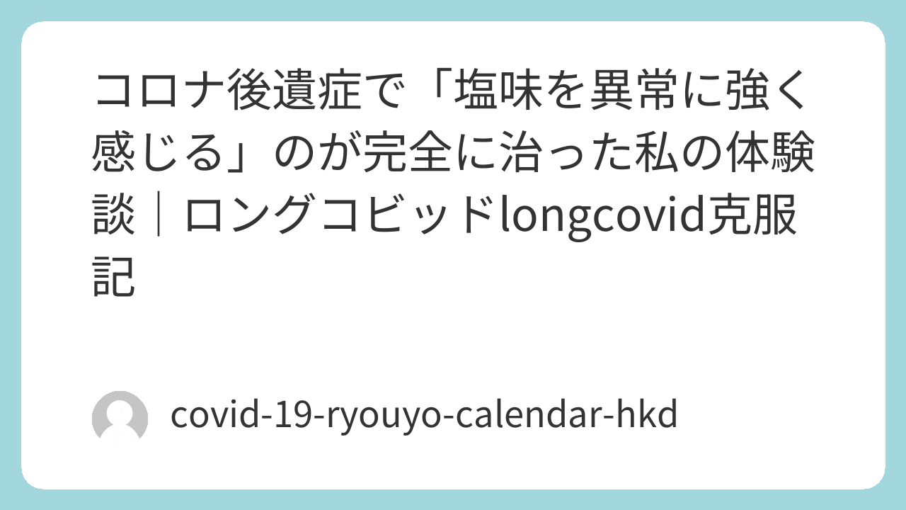同じロングコビッドで塩味を異常に強く感じる方に、私の全体験を詳しくお伝えします。