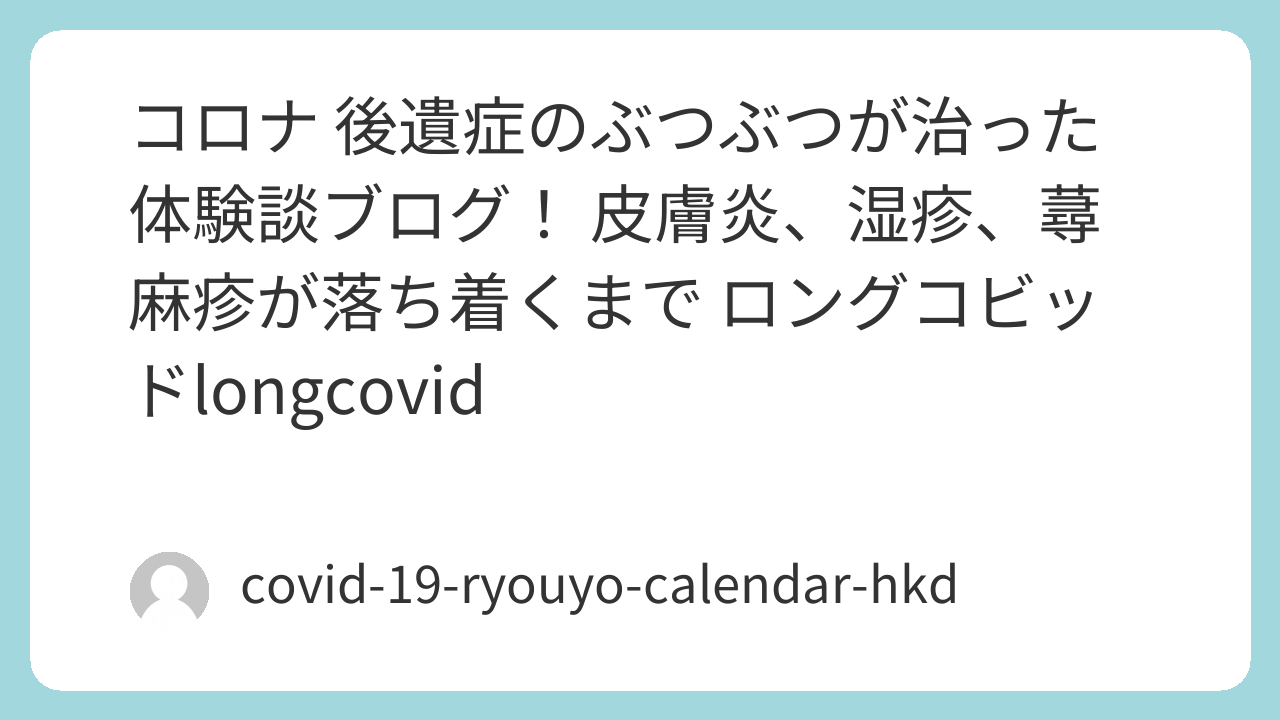 コロナ 後遺症 ぶつぶつ ロングコビッドlongcovidは 免疫反応や炎症によって皮膚に湿疹 蕁麻疹 しもやけ様病変などが現れる状態です。[10][5][1][4]